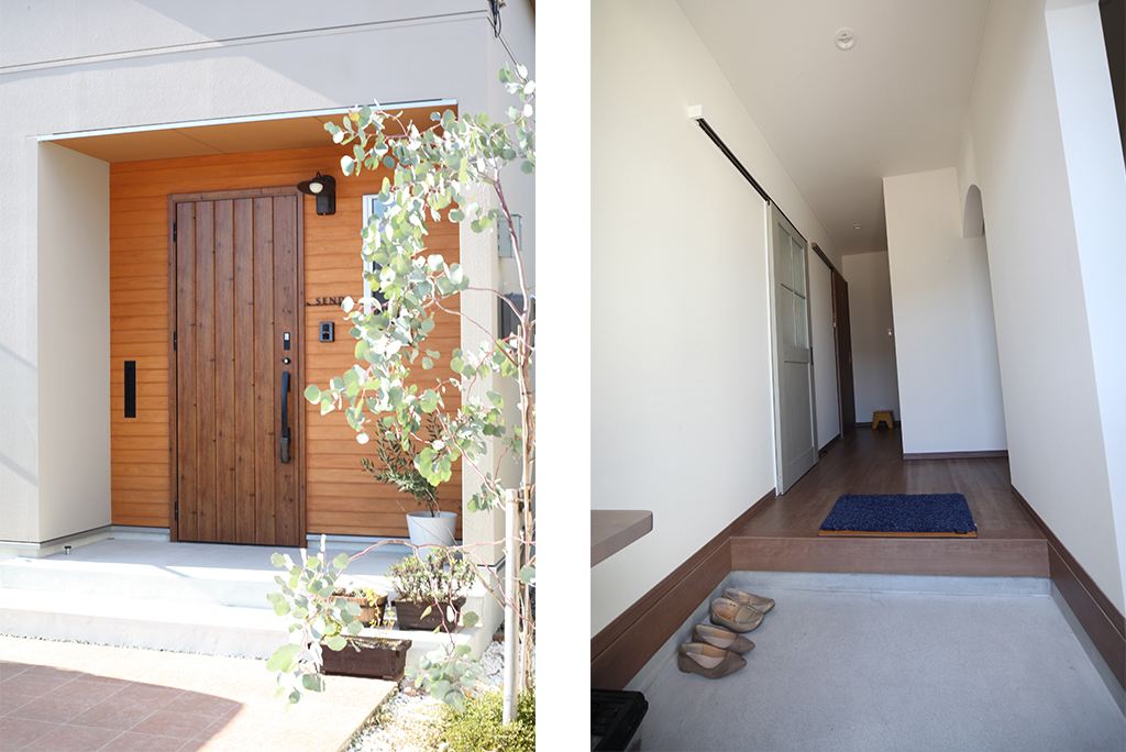 家事同線も水廻りが一直線になっていて、子供たちが暗いと「コワイ」と言うけれど、ドアを開けて電気を付けてキッチンから見えるようにしていれば、お風呂から「出たー」と出てこられるのでよかったです。