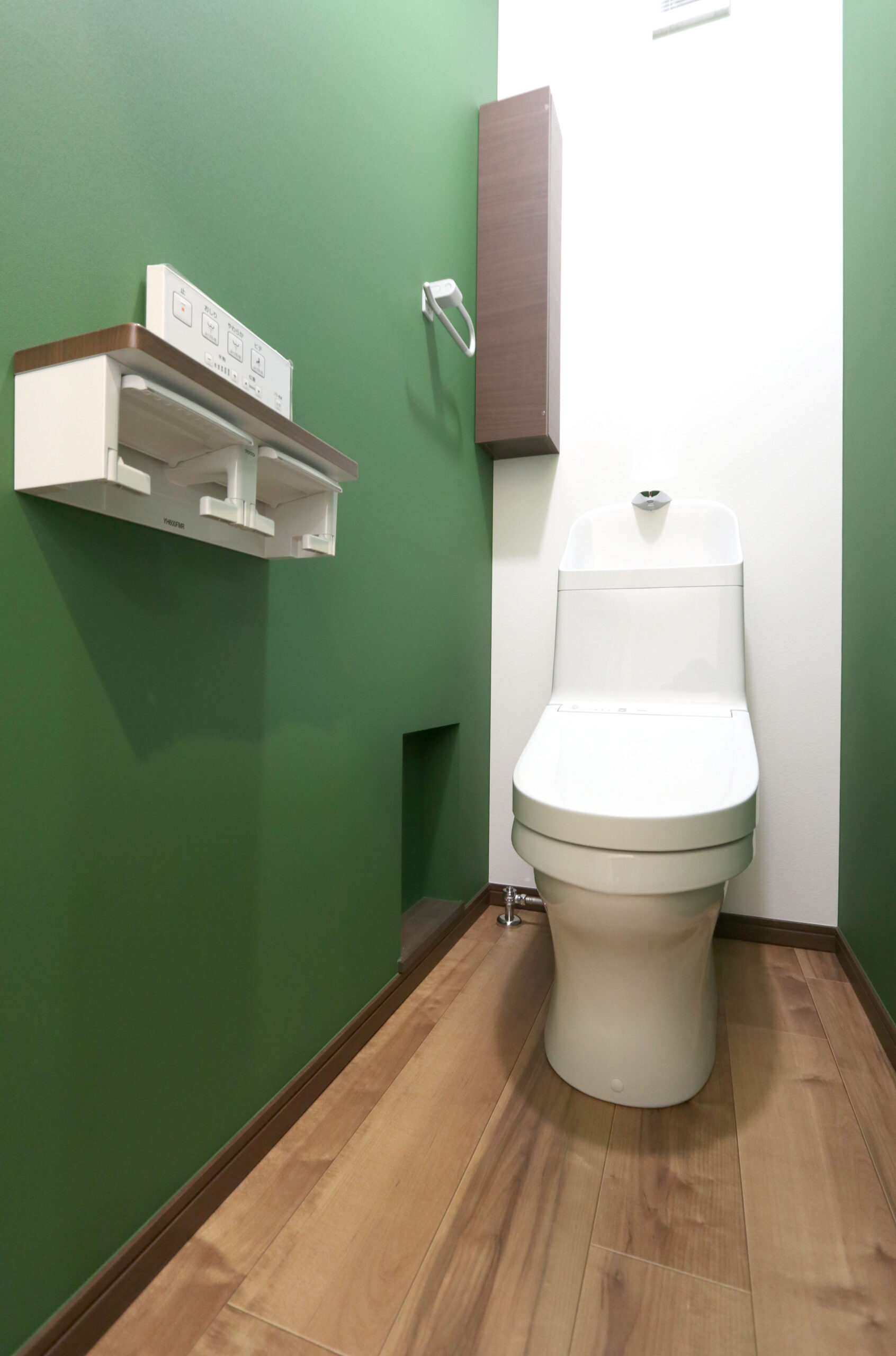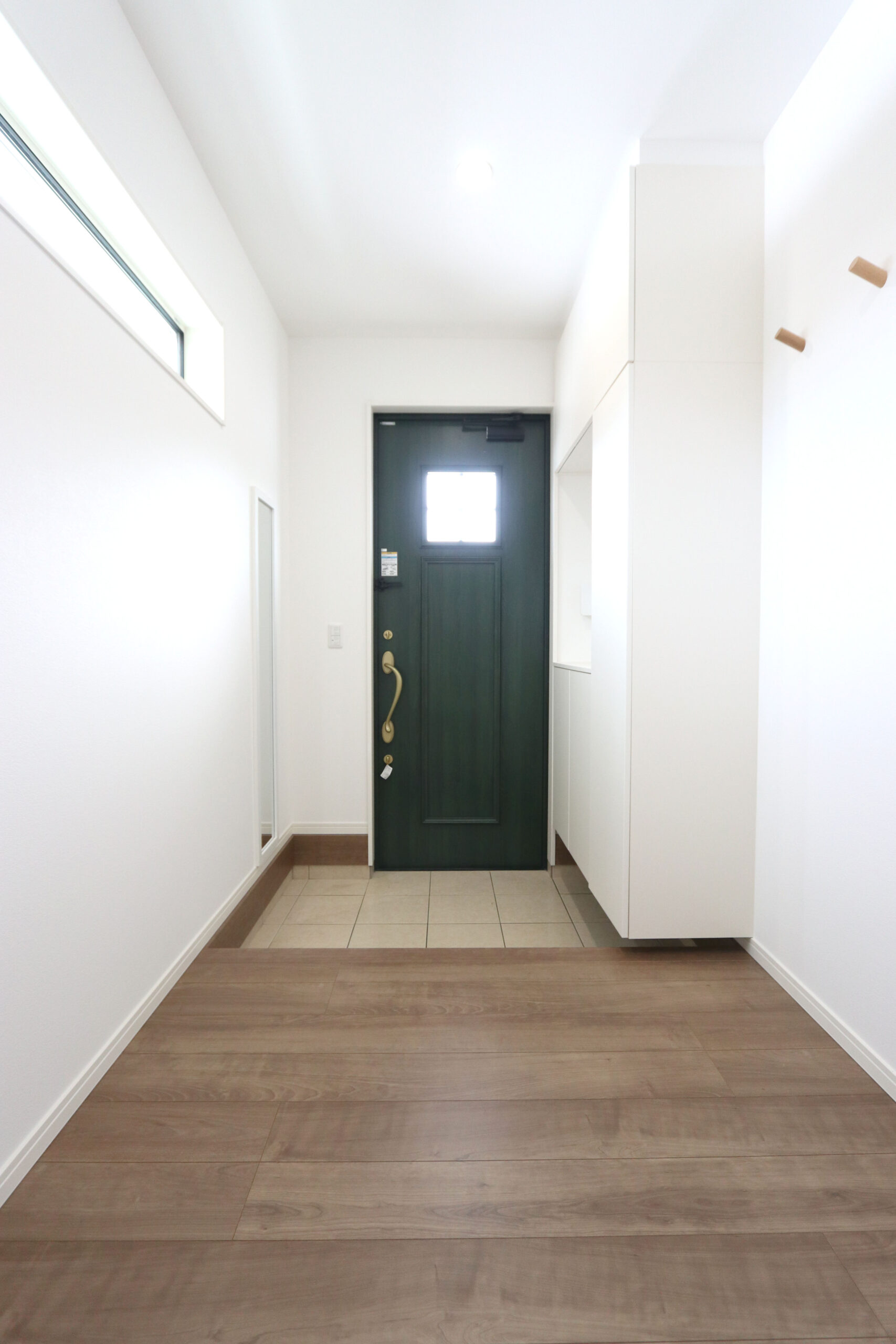 グリーンの玄関扉が印象的