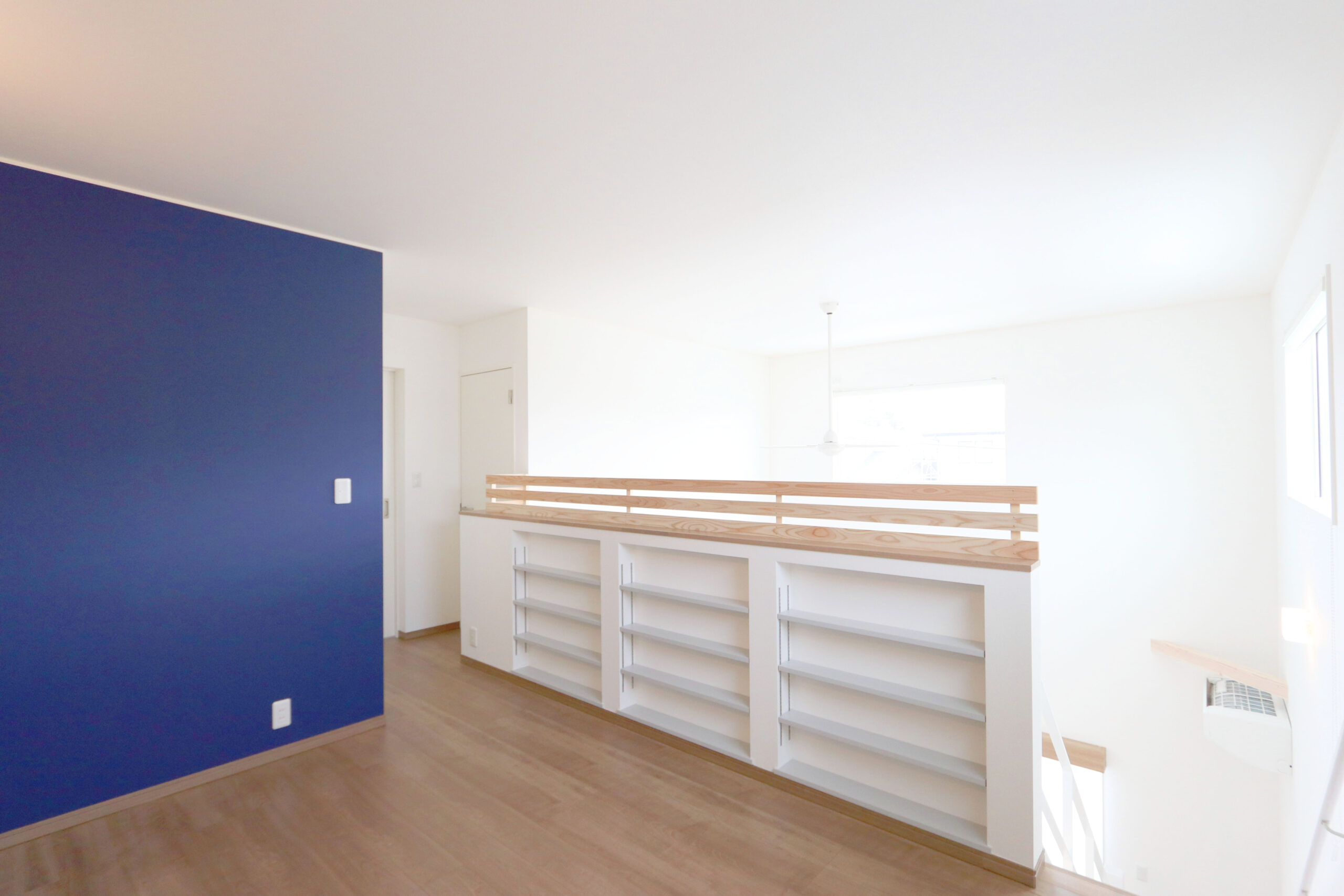 二階ホールには本棚も!様々な場所で寛げそうです
