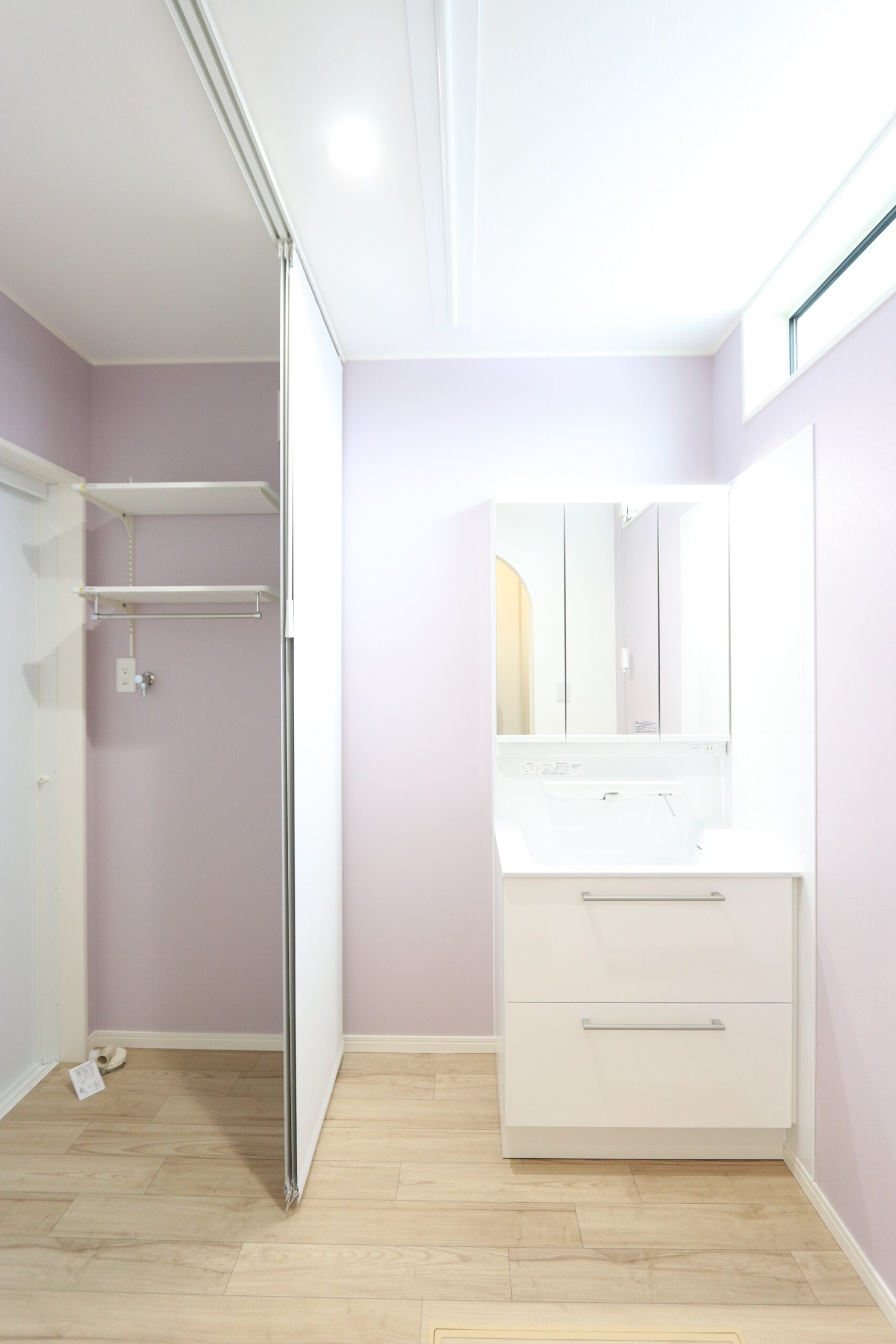 脱衣側と仕切りもできる洗面脱衣室