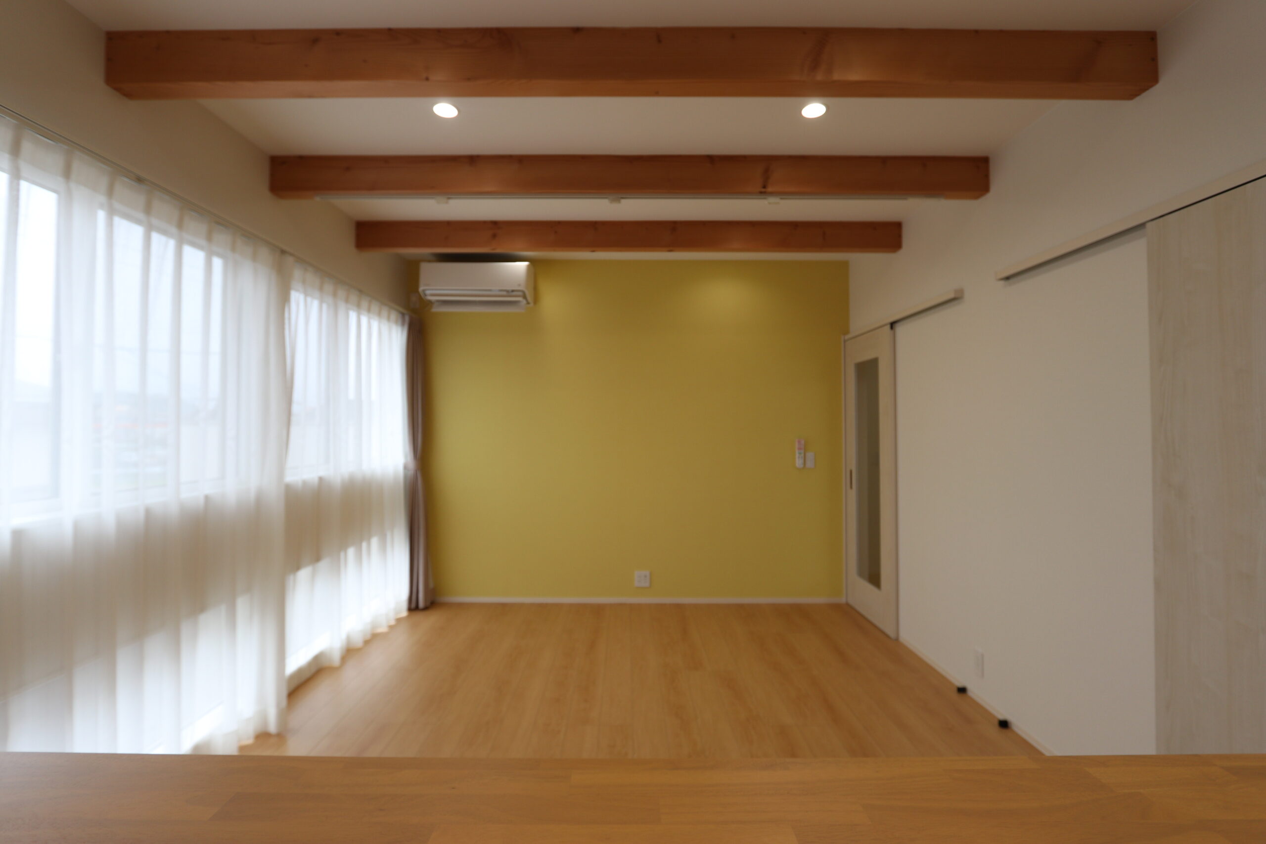 14帖のLDK。剥き出しの梁が存在感あります