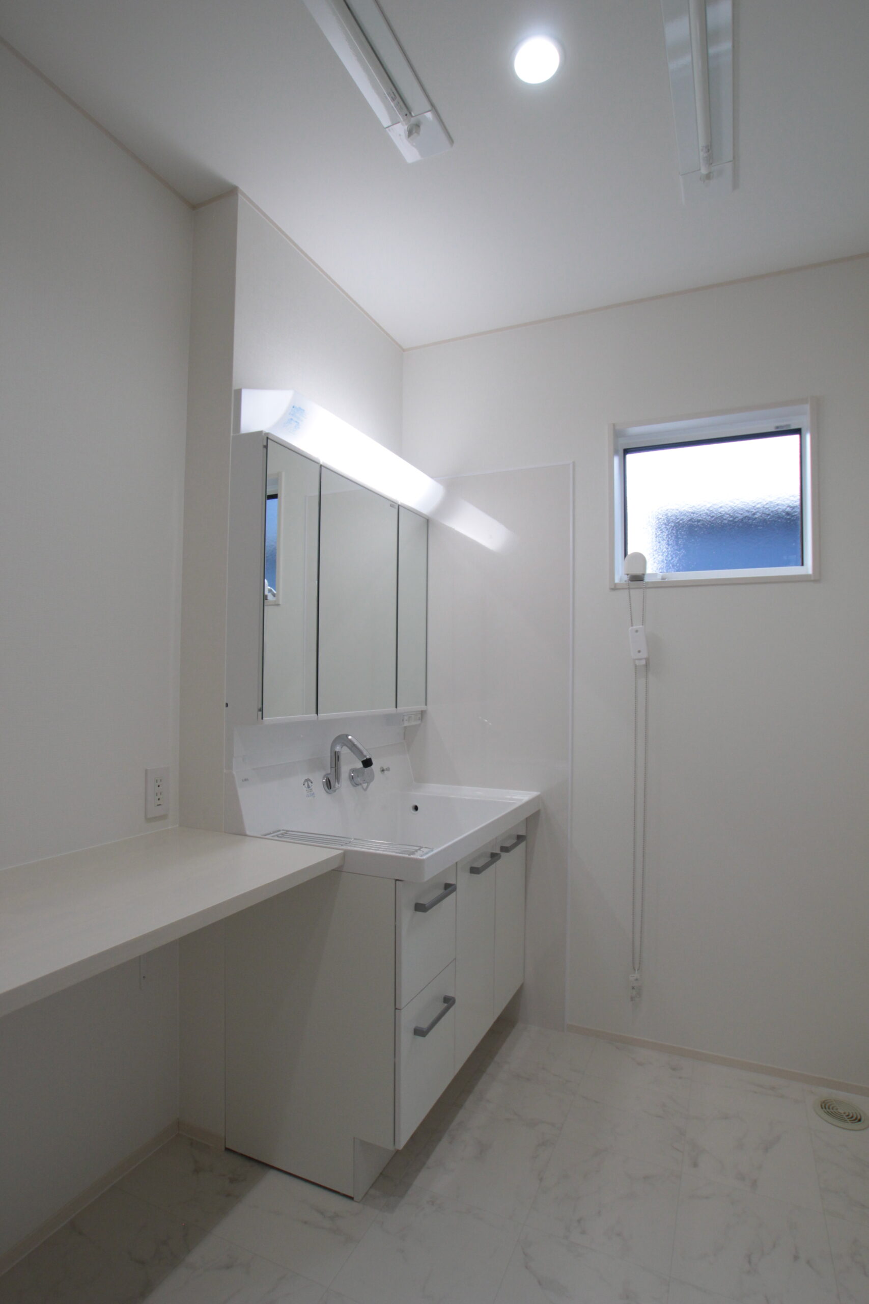 白で統一された清潔感抜群の洗面脱衣室