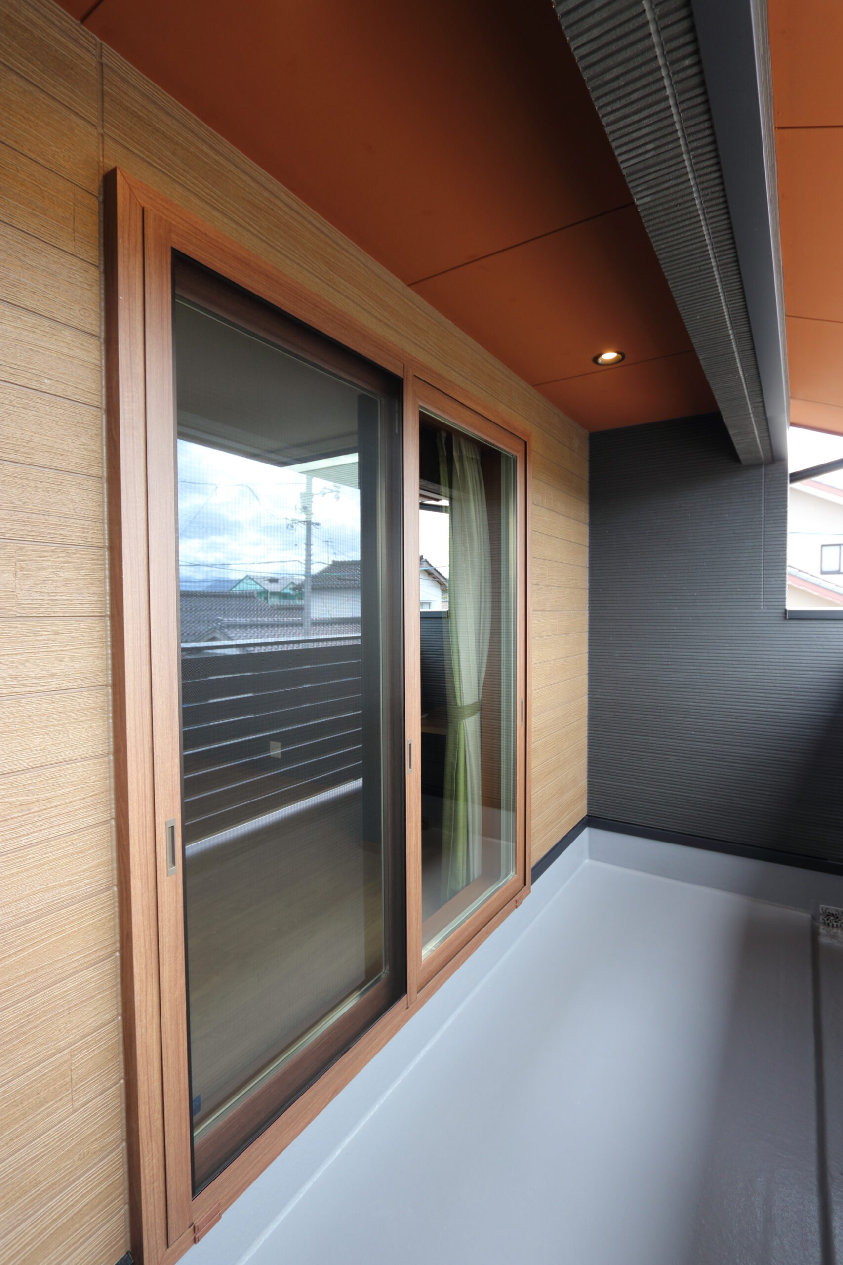 周囲の風景に溶け込みながらも、独自の魅力を放つ家。 広めに造ったバルコニーは,様々な用途に使用できると共にやさしい風が吹き抜け静かなひとときが広がります。