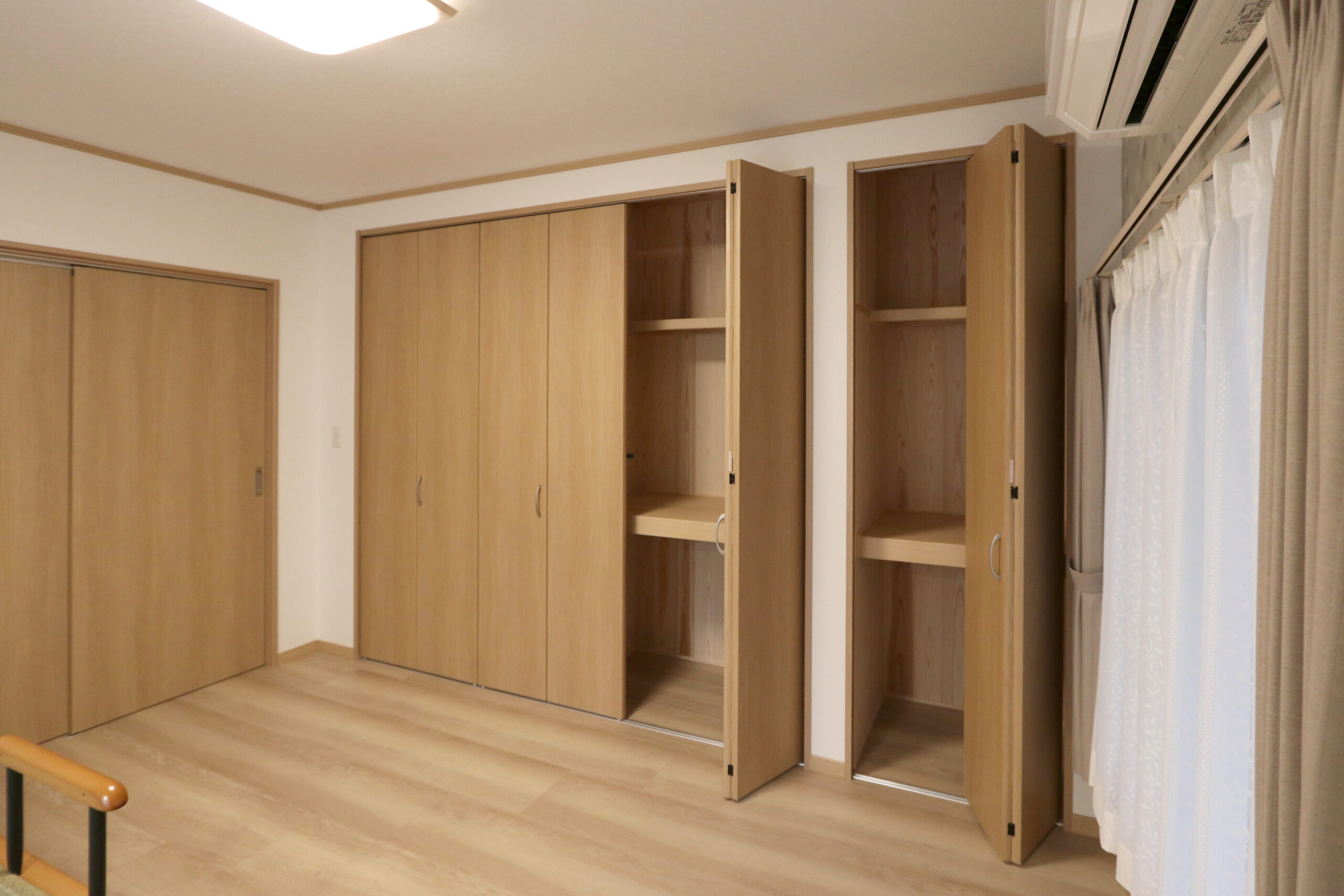 洋室に生まれ変わった、ご祖母様のお部屋。 押し入れは大きなクローゼットに生まれ変わり、内窓の設置でよりあたたかく、やさしい空間に。