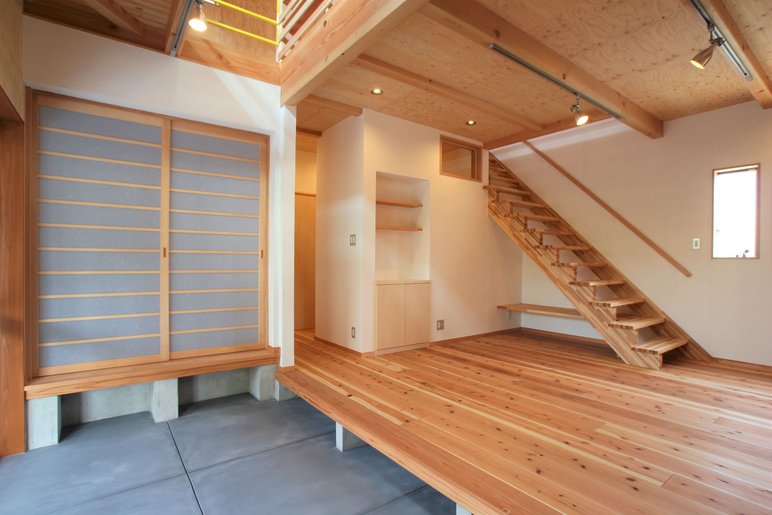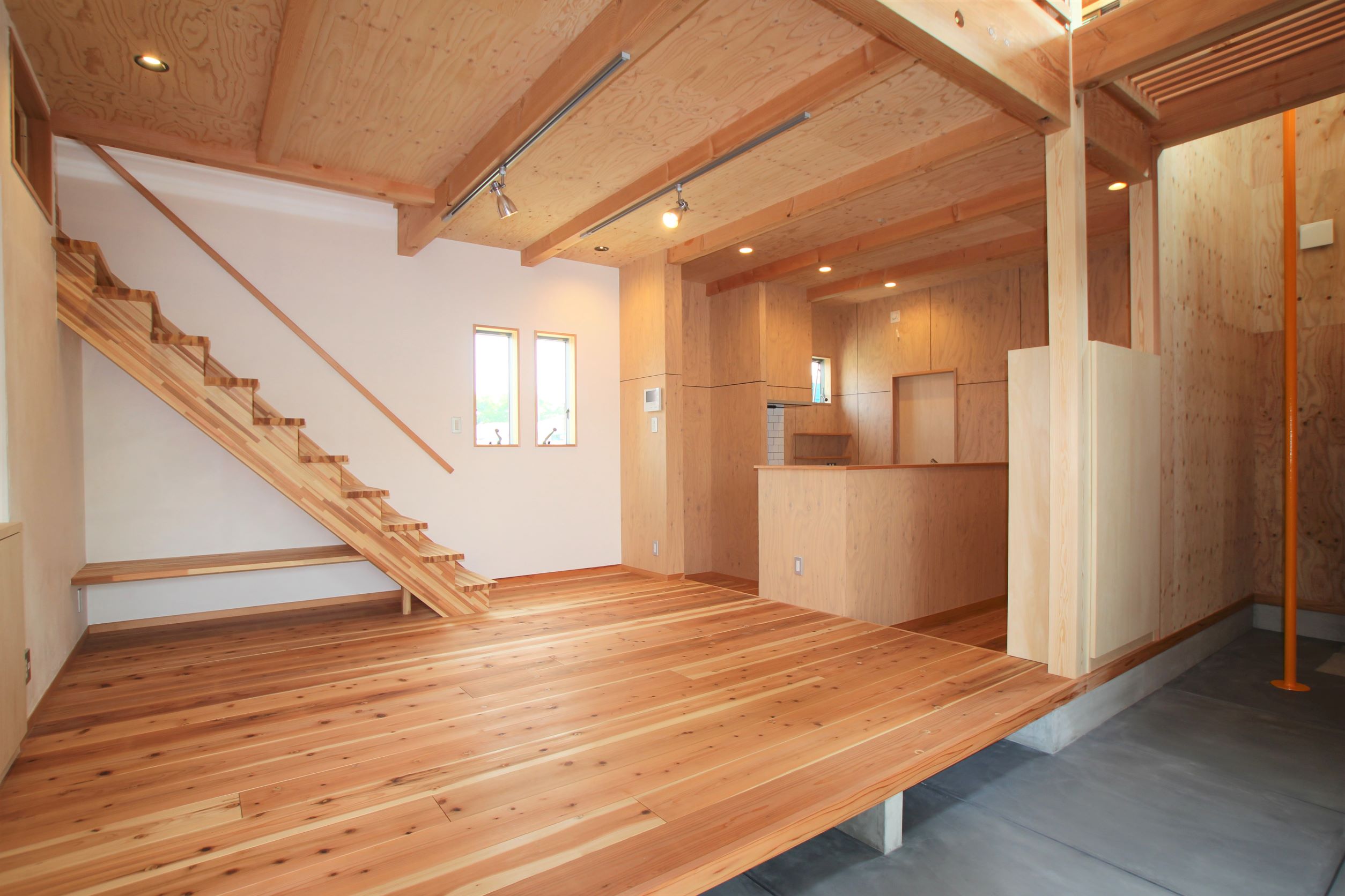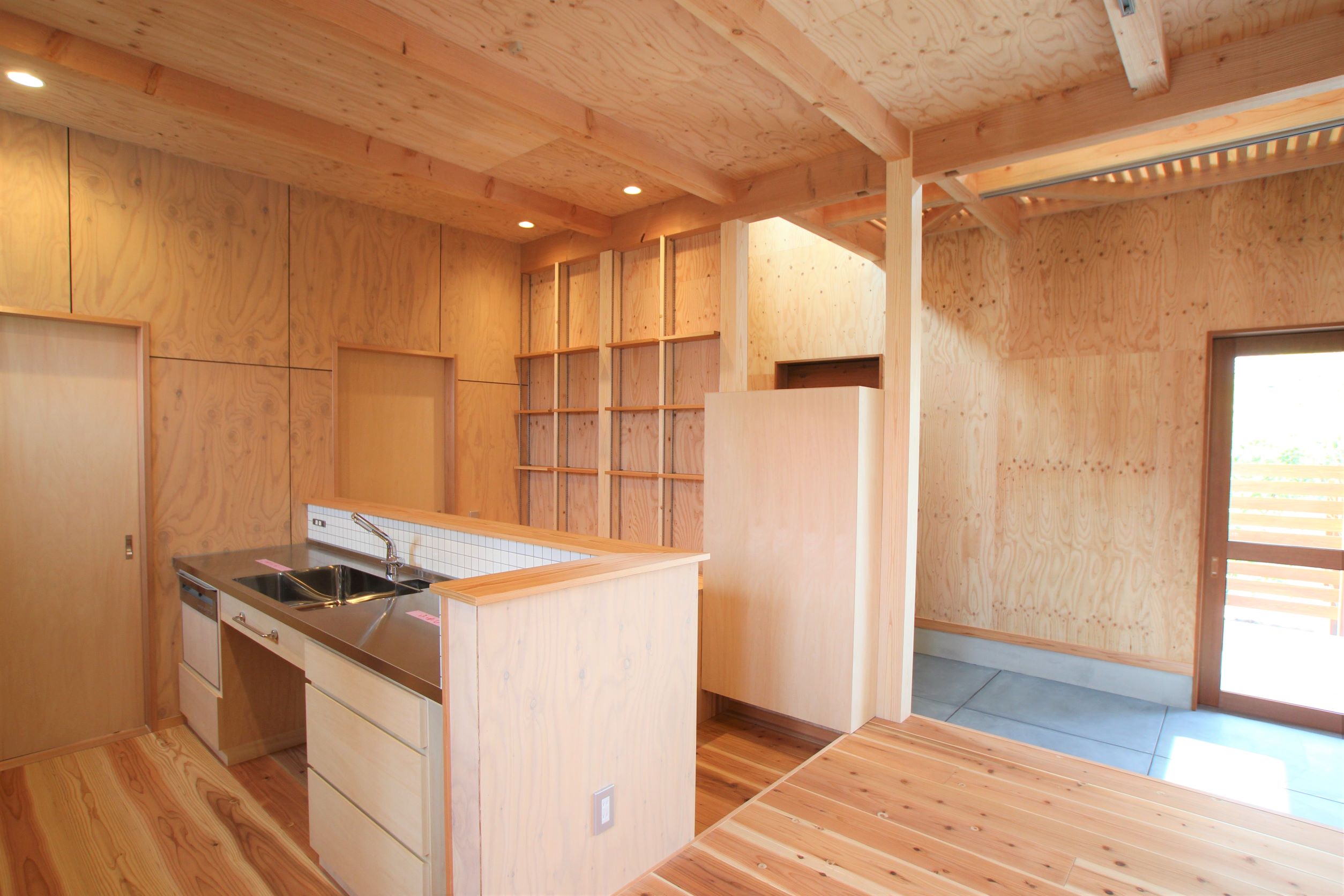 仕切りをなくした大空間! どこにいても家族の声をいつも感じられる、 自然素材にこだわったお家ができました。 内装壁もお客様が塗られ、お客様と共に楽しんでつくり上げた住宅です!