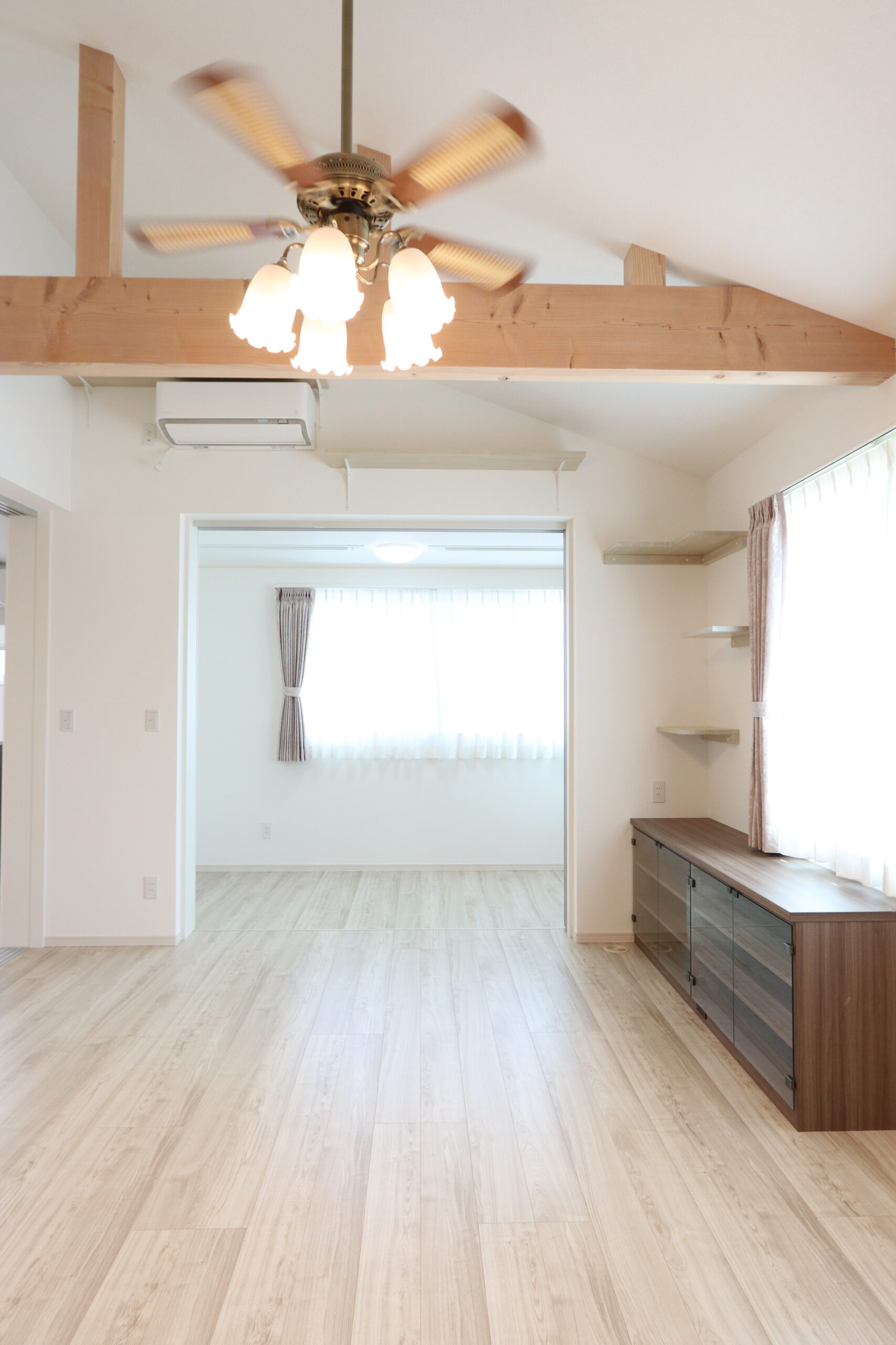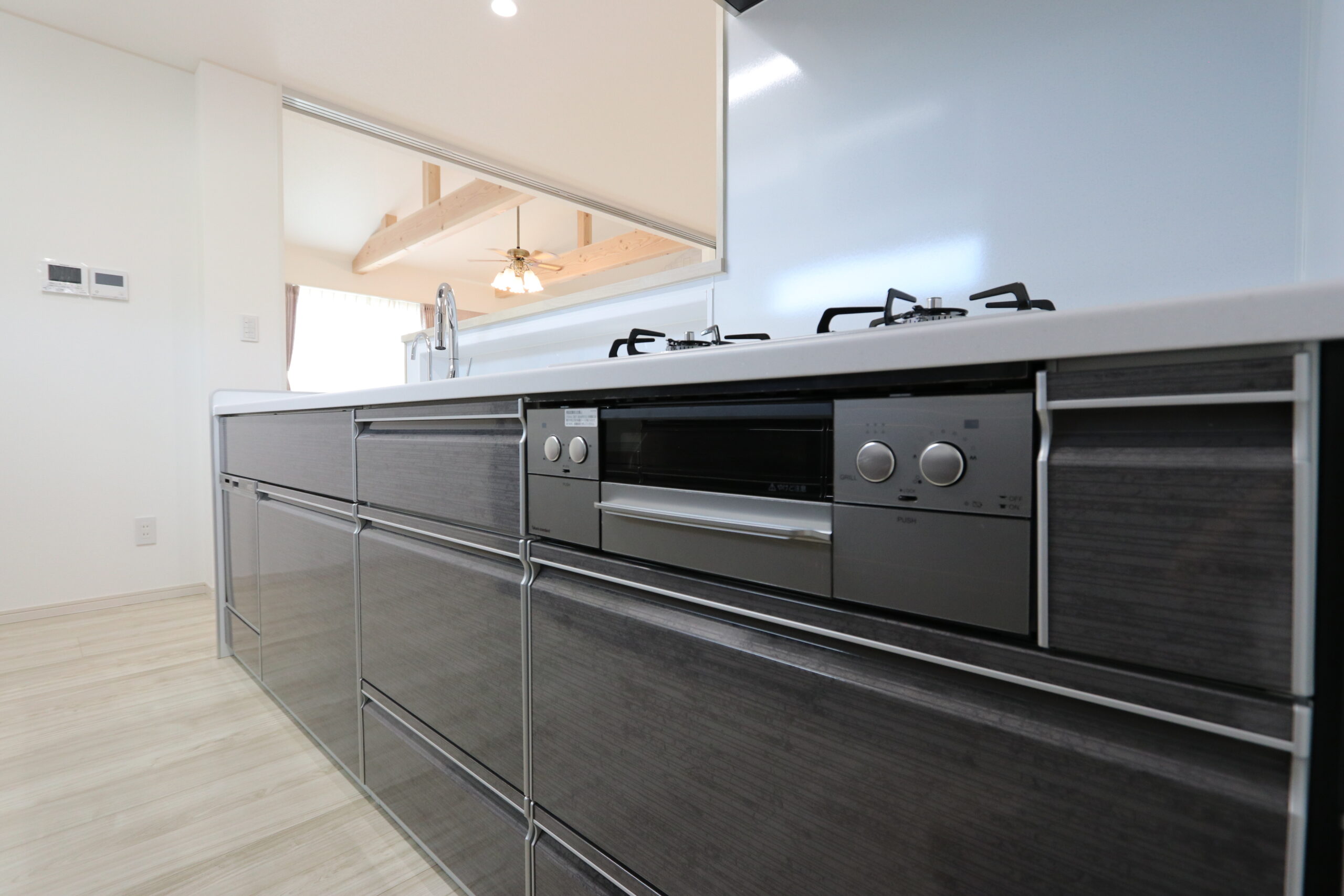 2世帯リノベーションにおけるバリアフリー。、機能性と美しさを両立させ、家族全員が長く快適に暮らせる空間となりました。 段差をなくしたフラットな床面や、広めの通路、手すりやスロープなどを取り入れ、移動がしやすい工夫をさまざまな場所に取り入れました。